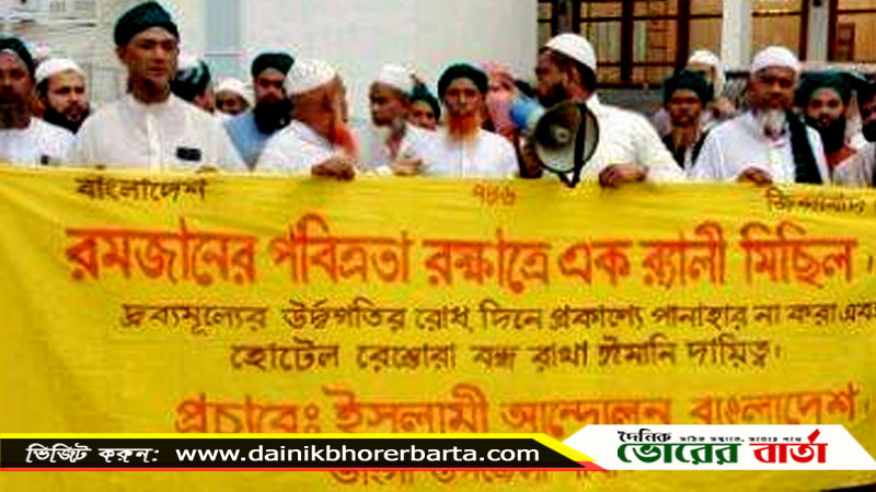 ইসলামী আন্দোলন ভাঙ্গা উপজেলা শাখার সভাপতি আব্দুল হান্নান মাতুব্বরের নেতৃত্বে র্যালী বের হয়ে শহরের প্রধান প্রধান সড়ক প্রদক্ষিণ করে থানার সামনে দিয়ে ঈদগাহ মসজিদের সামনে গিয়ে শেষ হয়। রমজানের পবিত্রতা রক্ষার্থে র্যালী করা হয়।র্যালীতে স্লোগান ছিল দ্রব্যমূল্যের উর্ধ্বগতি রোধ, দিনে প্রকাশ্যে পানাহার না করা, হোটেল রেস্তোরায় খোলামেলা বেচা বিক্রি বন্ধ রাখা, নারী-পুরুষ অবাধে খোলামেলা চলা বন্ধ রাখা, বেপর্দা বেহায়াপনা বন্ধ রাখা, মুসলমানদের ঈমানী দায়িত্ব।র্যালী ও আলোচনা সভায় সেসময় অংশ নেন ভাঙ্গা থানা মুজাহিদ কমিটির জিম্মাদার (ছদর) আলহাজ্ব হাবিবুর রহমান, ভাঙ্গা পৌর ৯নং ওয়ার্ডের কাউন্সিলর মোহাম্মদ জাকির হোসেন মুন্সী।আরও উপস্থিত ছিলেন, ১২ ইউনিয়নের ইসলামী আন্দোলনের নেতৃবৃন্দ ও ধর্মপ্রাণ মুসল্লিগণ। আলোচনা সভা পরিচালনা করেন, ভাঙ্গা উপজেলা ইসলামী আন্দোলনের সাধারণ সম্পাদক মোহাম্মদ আসাদুজ্জামান আসাদ। ইসলামী আন্দোলন বাংলাদেশ ভাঙ্গা উপজেলা শাখার আয়োজনে এ র্যালীও আলোচনা সভাটি অনুষ্ঠিত হয়।