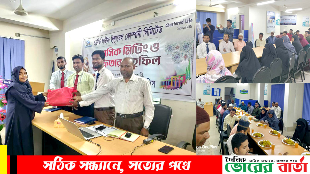 গতকাল ০৪/০৪/২০২৩ রোজ মঙ্গলবার বিকাল ৪ ঘটিকায় ফরিদপুর রাফেলস ইন মোড়, আর.কে প্লাজা, স্ট্যান্ডার্ড ব্যাংকের ৩য় তলায় চার্টার্ড লাইফ ইন্স্যুরেন্স কোম্পানি লিমিটেড ফরিদপুর সেলস অফিসে মাসিক মিটিং ও ইফতার মাহফিল অনুষ্ঠিত হয়।শতভাগ ডিজিটাল বীমা সেবা নিয়ে চার্টার্ড লাইফ ইন্স্যুলেন্স কোম্পানি লিমিটেড ফরিদপুর এর প্রত্যন্ত অঞ্চলে গ্রাহকদের সেবা দিয়ে যাওয়ার লক্ষ্যে কাজ করে যাচ্ছে।