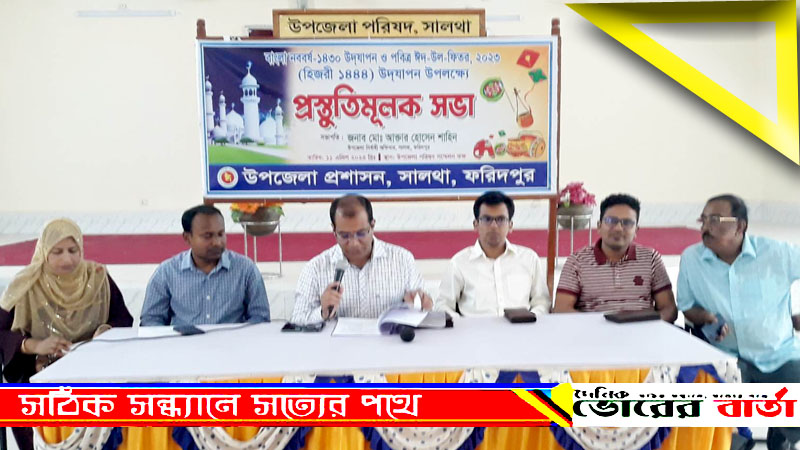 আজ ফরিদপুরের সালথায় বাংলা নববর্ষ-১০৩০ উদযাপন ও পবিত্র ঈদ-উল-ফিতর ২০২৩ (হিজরী ১৪৪৪) উদযাপন উপলক্ষ্যে প্রস্তুতিমূলক সভা অনুষ্ঠিত হয়েছে।