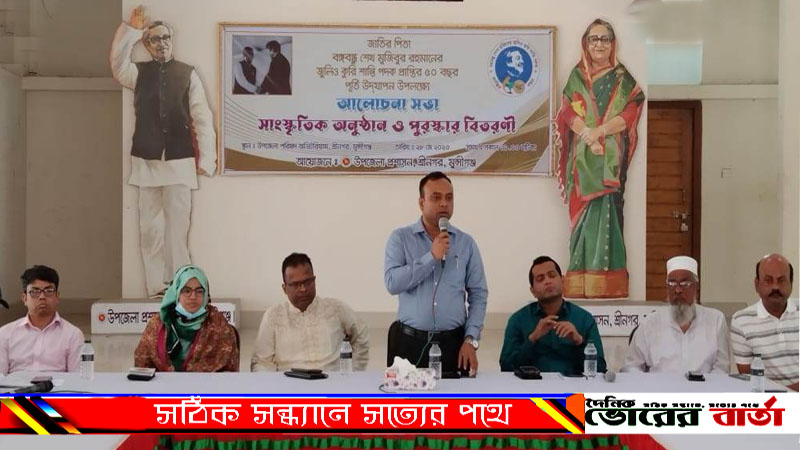 মুন্সীগঞ্জ জেলার শ্রীনগর উপজেলা প্রশাসন আয়োজিত। গতকাল রবিবার সকাল ১১ টায় উপজেলা পরিষদের অডিটোরিয়ামে জাতির পিতা বঙ্গবন্ধু শেখ মুজিবুর রহমানের ফুলিও কুরি শান্তি পদক প্রাপ্তির ৫০ বছর উদযাপন উপলক্ষে সাংস্কৃতিক অনুষ্ঠান, পুরস্কার বিতরণ ও আলোচনা সভা অনুষ্ঠিত হয়েছে।