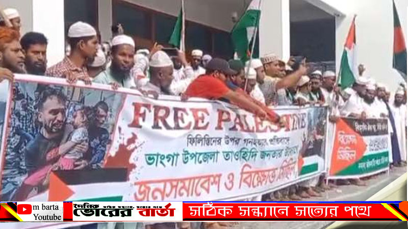 ফিলিস্তিনিদের উপর গণহত্যার প্রতিবাদে ফরিদপুরের ভাঙ্গায় জনসমাবেশ ও বিক্ষোভ মিছিল