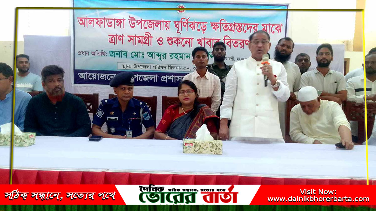 ফরিদপুরের আলাফাডাঙ্গা উপজেলায় তিন ইউনিয়নে বিভিন্ন গ্রামের উপর দিয়ে বয়ে যাওয়া ঘূর্ণিঝড়ে ক্ষতিগ্রস্তদের মাঝে আরো ১০০ পরিবারের মধ্যে ঢেউটিন ও শুকনা খাবার সহায়তা দিয়েছে মাননীয় সরকারের মৎস ও প্রাণীসম্পদ মন্ত্রী।