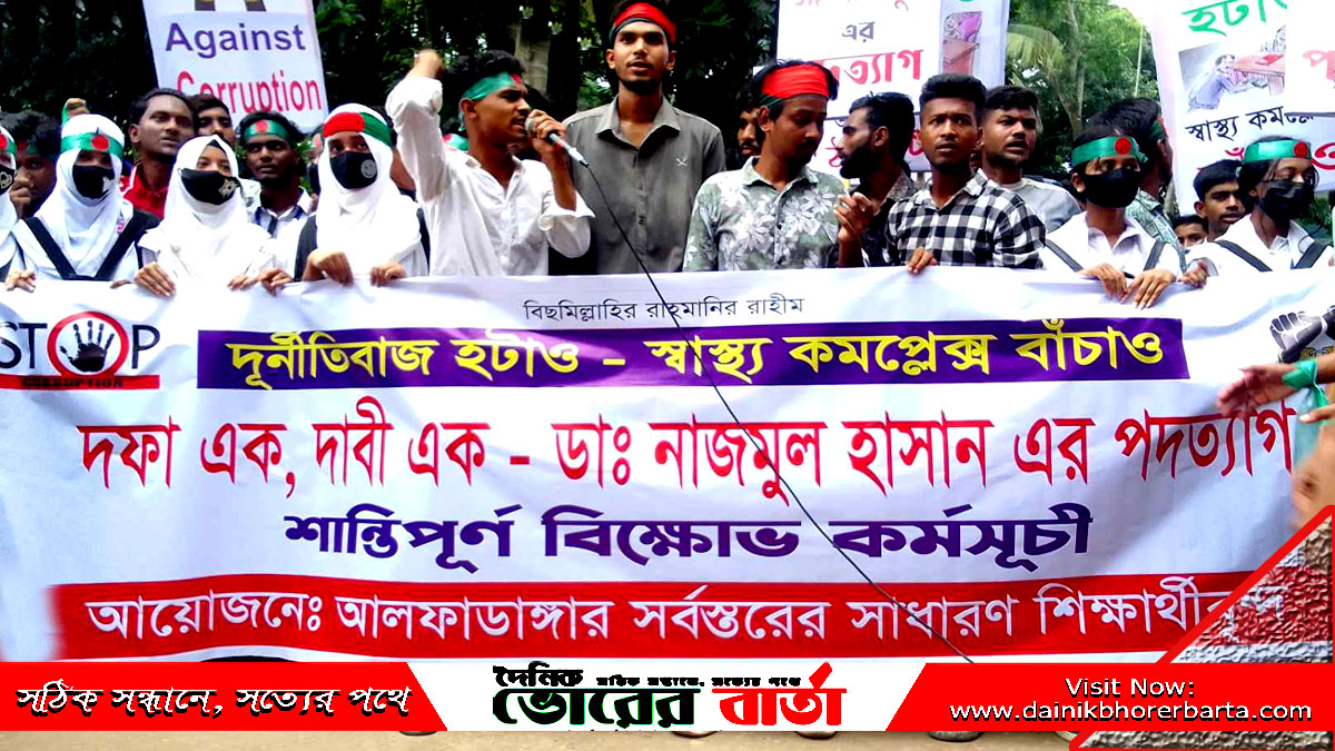 ফরিদপুরের আলফাডাঙ্গা উপজেলা স্বাস্থ্য কমপ্লেক্স এর কর্মকর্তার বিরুদ্ধে বিক্ষোভ মিছিল ও অবস্থান কর্মসূচী পালন করে কর্মকর্তার কার্যালয়ে তালা দিলেন শিক্ষার্থীরা।