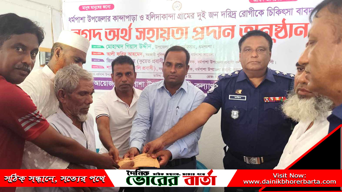 সুনামগঞ্জের ধর্মপাশা উপজেলা প্রেস ক্লাবের কক্ষে রবিবার দুপুরে এ উপজেলার দুইজন দরিদ্র রোগীকে চিকিৎসা বাবদ নগদ ৮০হাজার টাকা অর্থ সহায়তা দেওয়া হয়েছে। প্রবাসীদের সংগঠন ধর্মপাশা উপজেলা প্রবাসী কল্যাণ সমিতি বিশ্বব্যাপী এই অনুষ্ঠানের আয়োজন করে।