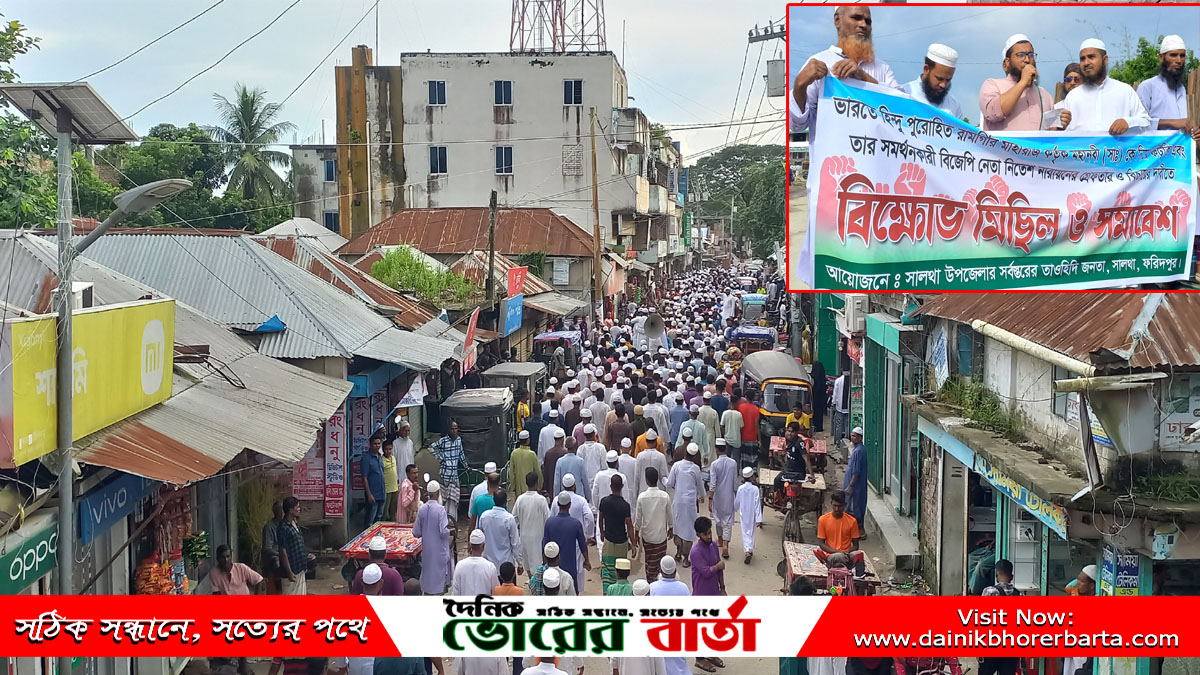 ভারতের মহারাষ্ট্রে মহানবী হযরত মুহাম্মদ (সাঃ)-কে নিয়ে কটূক্তি ও আপত্তিকর বক্তব্যের প্রতিবাদে বিক্ষোভ মিছিল-সমাবেশ করেছে সালথা উলামা মাশায়েখগণ ও তাওহীদি জনতা।