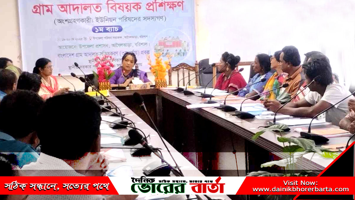 বরিশালের আগৈলঝাড়া উপজেলায় গ্রাম আদালত সক্রিয়করণ ও শক্তিশালীকরণের লক্ষ্যে দুই দিনব্যাপী প্রশিক্ষণ কোর্স অনুষ্ঠিত হয়েছে। স্থানীয় সরকার মন্ত্রণালয়ের অর্থায়নে এবং উপজেলা প্রশাসনের আয়োজনে দুইদিনের এই প্রশিক্ষণের উদ্বোধন করেন উপজেলা নির্বাহী অফিসার ফরিহা তানজিন।