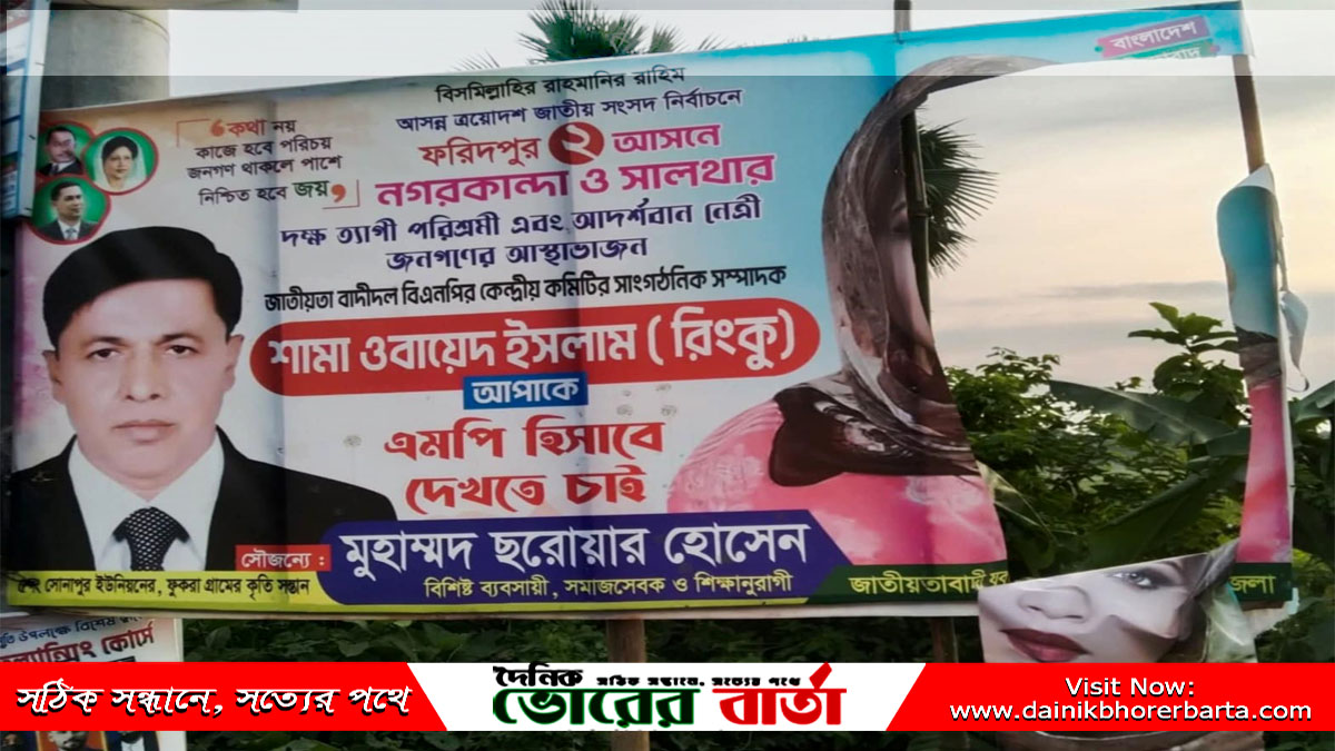 সালথায় শামা ওবায়েদ এর  প্রচার মূলক ব্যানার ছেঁড়ার অভিযোগ