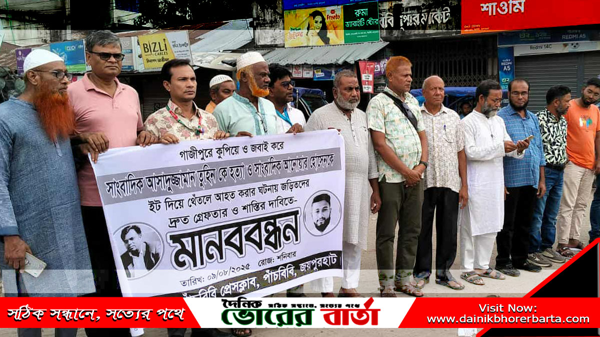 সাংবাদিক তুহিন হত্যার প্রতিবাদ ও বিচারের দাবীতে পাঁচবিবিতে মানববন্ধন DBB