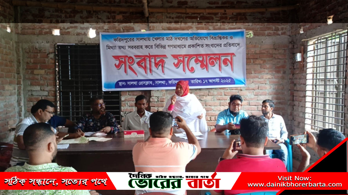 আজ রবিবার (১৭ আগস্ট) দুপুরে সালথা প্রেসক্লাবে সংবাদ সম্মেলন করে এই অভিযোগ করেন ভুক্তভোগী ওই নারী। তিনি দাবি করেন, চাঁদা না দেওয়ার কারণে প্রভাবশালীরা তার জমি দখলের চেষ্টা করছেন।