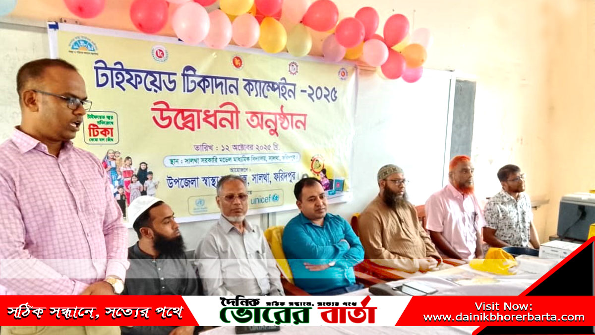 ফরিদপুরের সালথায় টাইফয়েড টিকাদান ক্যাম্পেইনের শুভ উদ্বোধন । রবিবার (১২ অক্টোবর) সকাল সাড়ে ১০টায় উপজেলা স্বাস্থ্যকমপ্লেক্সের আয়োজনে উপজেলার রামকান্তপুর ইউনিয়নের সালথা সরকারি মডেল মাধ্যমিক বিদ্যালয়েরকক্ষে এ উদ্বোধনী অনুষ্ঠান অনুষ্ঠিত হয়।