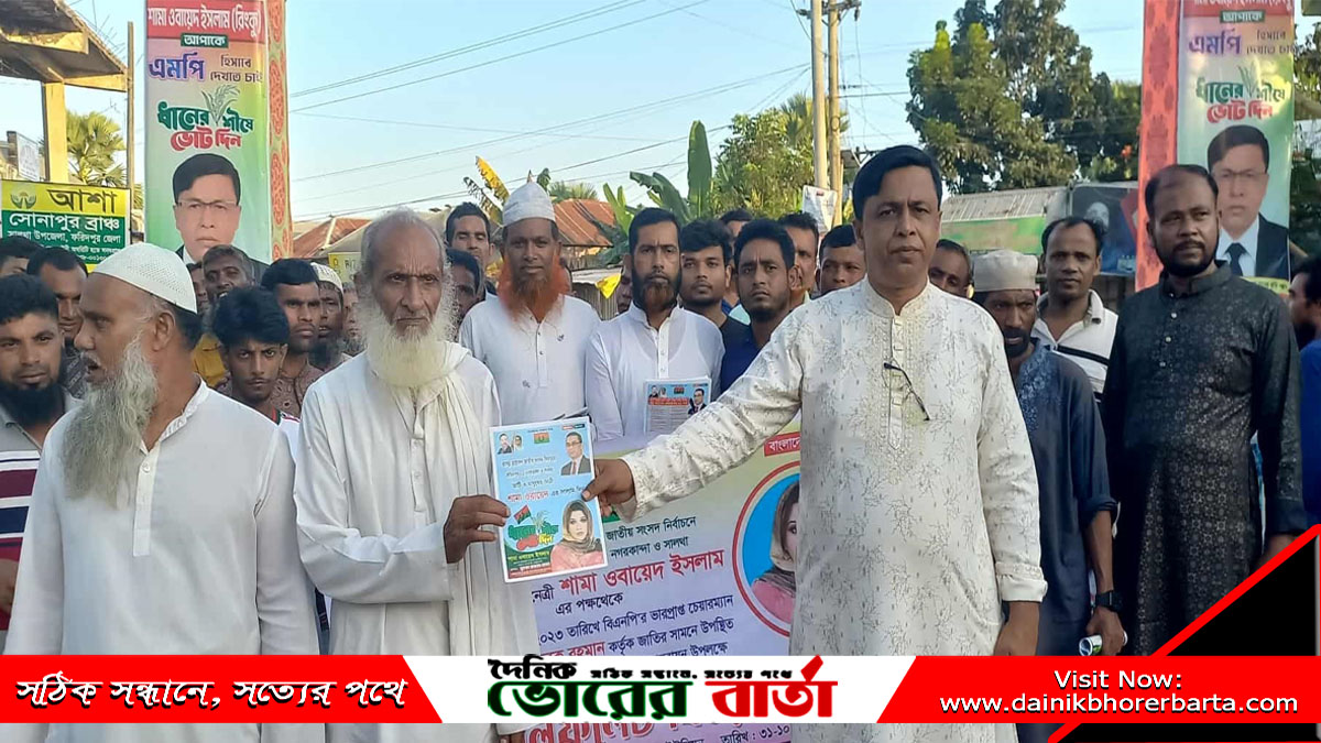 সালথায় মুহাম্মদ ছরোয়ার হোসেনের উদ্যোগে শামা ওবায়েদের নির্বাচনী লিফলেট বিতরণ