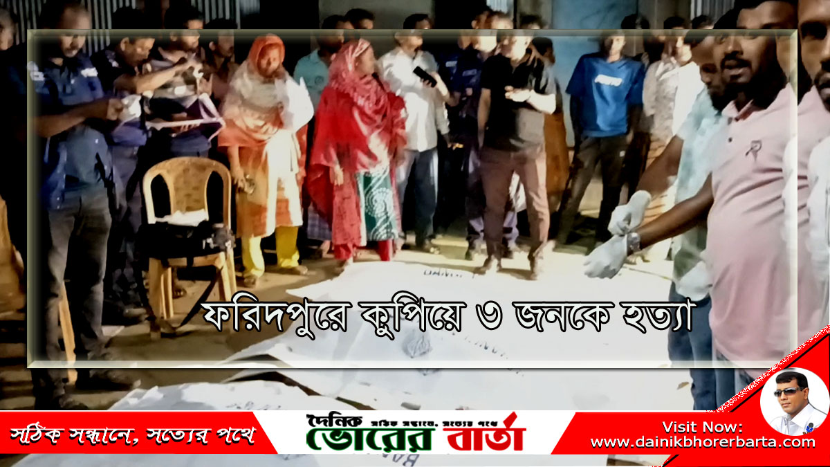 ফরিদপুর জেলা সদর উপজেলার আলিয়াবাদ ইউনিয়নের গদারডাঙ্গী গ্রামে কোদাল দিয়ে কুপিয়ে তিনজনকে হত্যা করার ঘটনা ঘটেছে। এ ঘটনায় আরো একজন গুরুতর আহত হয়ে হাসপাতালে চিকিৎসাধীন রয়েছে।